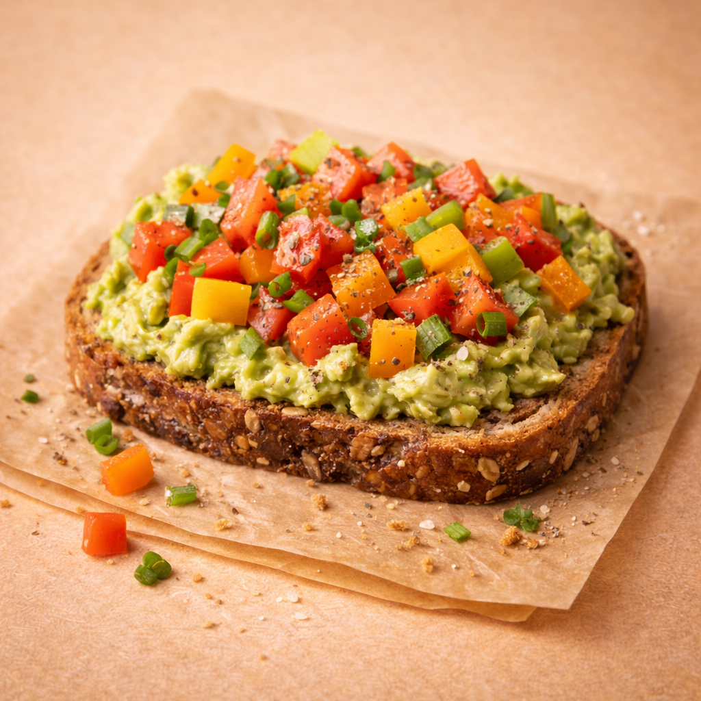 smashed avocado, bell pepper, tomatoes